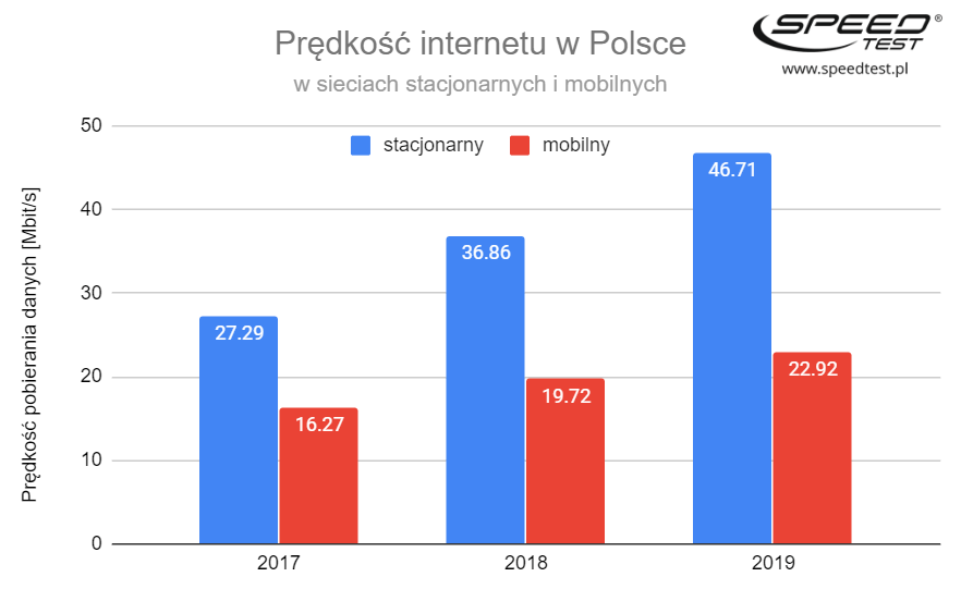 Polski internet w 2025 roku – 300 Mb/s w 5G, większy…